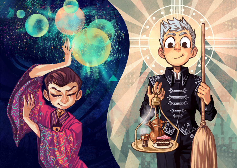 Airships drift and dart by above and below in an impossible city that is toweringly taller than it is wide. Magic prevents anyone from falling, unless you’re the one man in the world who is unaffected by magic. Steampunk gadgets, magical murder, castles of questionable location, grimy alleys with dark deals: Lunule has it all.